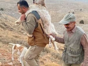 Bugün çok fazla arazide gezdiklerini ve köpeğin yorgun düştüğünü belirten Ali Tezcan, "Biz can dostlarımızı dağda bırakmıyoruz, 5 kilometre sırtımızda taşıdık" dedi.