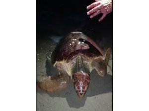 Dünyada nesli koruma altındaki caretta carettalardan biri yumurta bırakmak için geldiği sahilde vatandaşların flaş ve ışıklı ilgisi karşısında karaya çıkamadan geri döndü.
