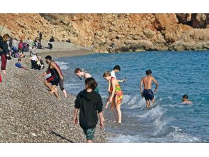 Yurdun dört bir yanından kar manzaraları gelirken, hava sıcaklığının 18 derece, nem oranı yüzde 75'e kadar yükseldiği Antalya'daki vatandaşlar hafta sonu güneşli havayı görünce sahillere akın etti. Kentin dünyaca ünlü sahiline gelen yerli, yabancı tüm kent sakinleri denize girdi, bol bol güneşlendi.
