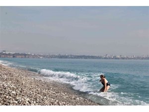 Ülke genelinde soğuk ve kar yağışı etkili olurken, turizm kenti Antalya'da sıcak havayı değerlendirmek isteyen vatandaşlar Konyaaltı sahiline koşarak, denize girdi.