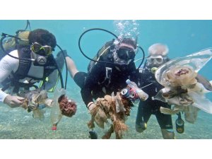 Antalya'da dip temizliği için dünyaca ünlü sahilde su altı dalışı yapan üniversite öğrencileri, çevre kirliliğine dikkat çekmek için denizin dibindeki çöpleri zıpkınla balık avlar gibi metal ızgara şişiyle topladı. Gençler, başlattıkları temizlik projesine ise "Çöp Şiş" adını verdi.